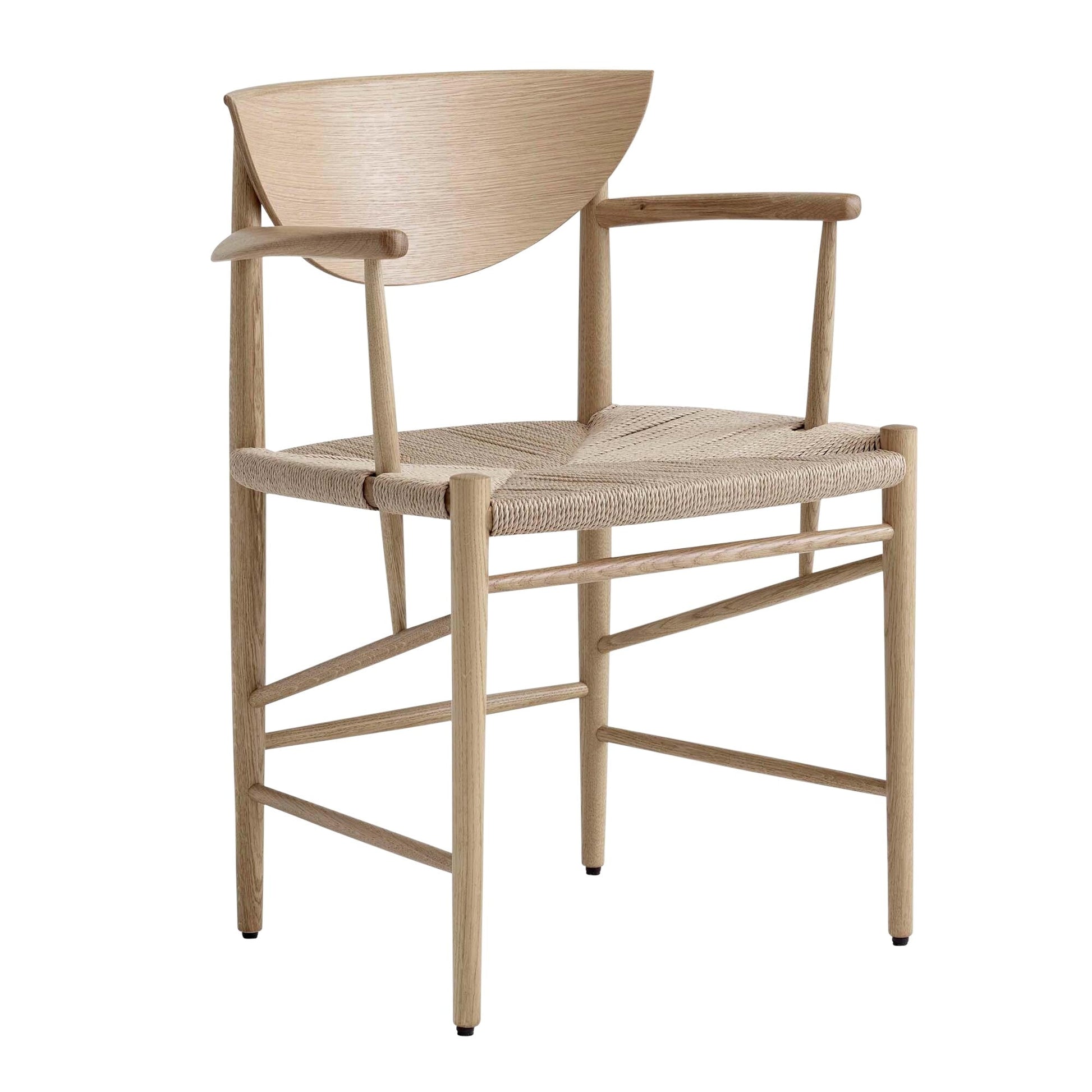 Ausführungen: Drawn HM4 Armlehnstuhl / Eiche weiß geölt/Papierkordel natur/BxTxH 59x54x78cm/Furnier formgepresst/Wagner Quick-Click Filzgleiter