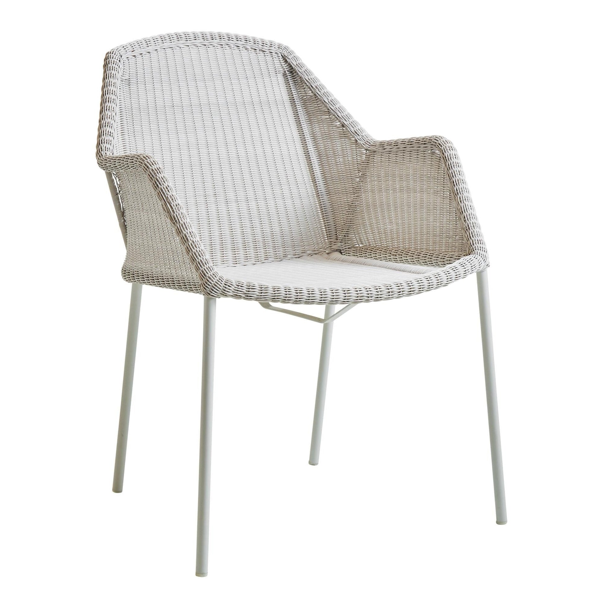 Ausführungen: Breeze Gartenarmlehnstuhl / weißgrau/Sitzfläche Cane-line Faser/Gestell Stahl pulverbeschichet/BxHxT 60x83x62cm