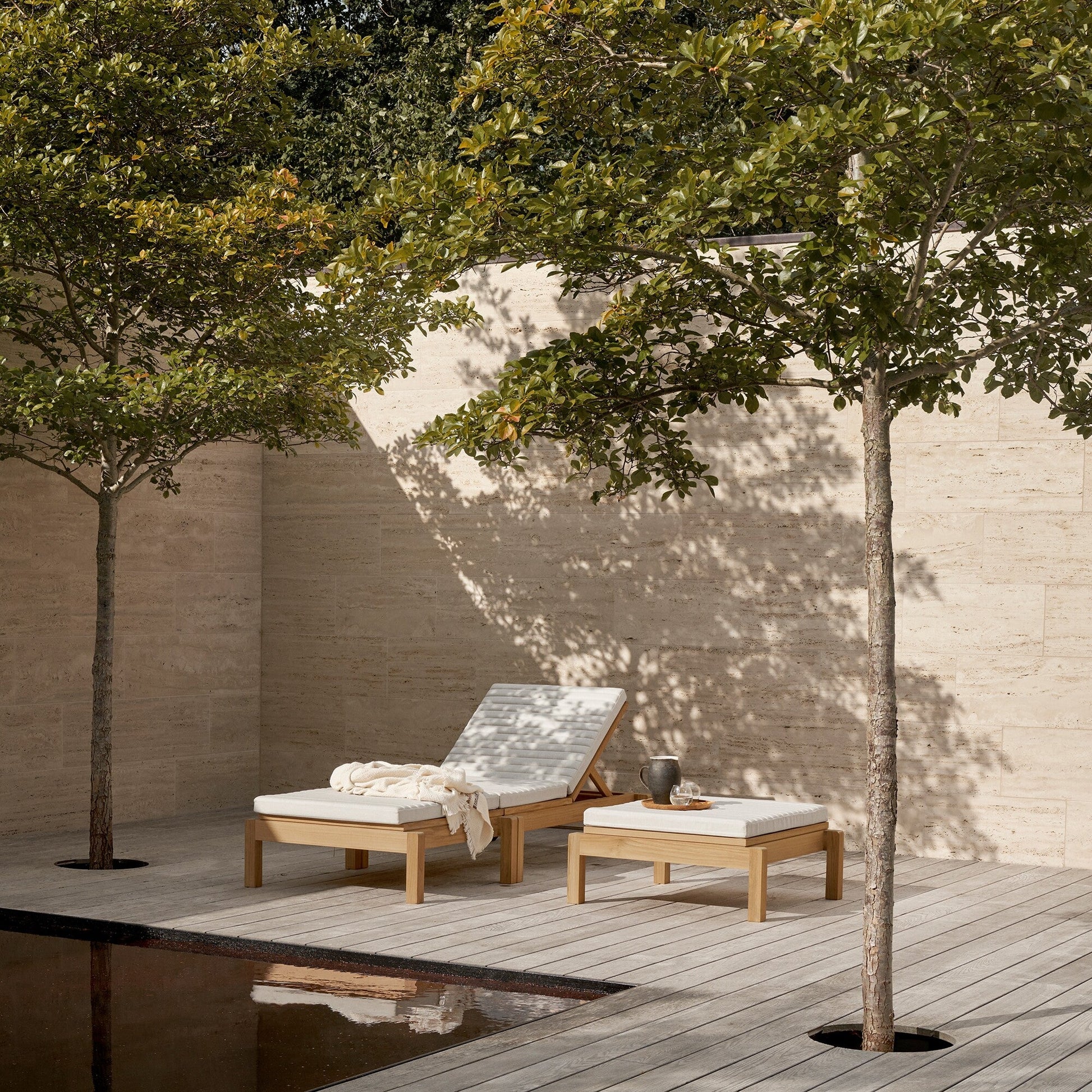 Die AH604 Fußbank für AH604 Sonnenliege ist ein Meisterwerk des Designers Alfred Homann für die renommierte Marke Carl Hansen. Sie ist Teil eines zeitlosen Outdoor-Möbelprogramms, das durch hochwertige Holzdesigns eine natürliche Atmosphäre schafft und mit ihren präzise ausgearbeiteten Details einen eleganten Eindruck hinterlässt.