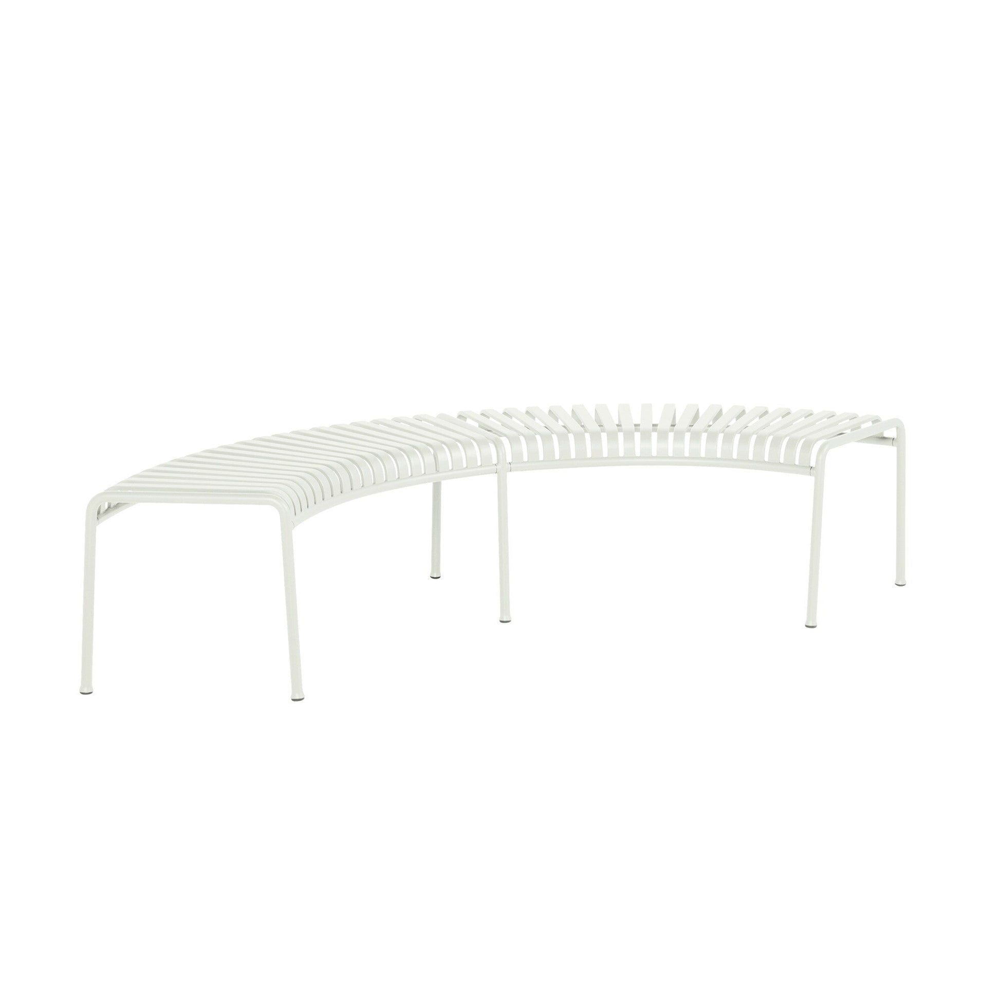 Die Sitzfläche der Palissade Park Gartenbank besteht aus Lamellen, die sich elegant in einem Bogen nach unten ziehen. Durch ihre Form und Struktur kann sie ideal mit anderen Elementen der Outdoor-Kollektion kombiniert werden, um innovative und einzigartige Formen im Garten, im Park oder im Freibereich eines Restaurants oder Hotels zu schaffen.
