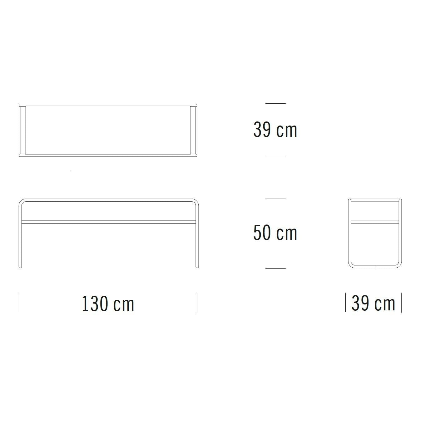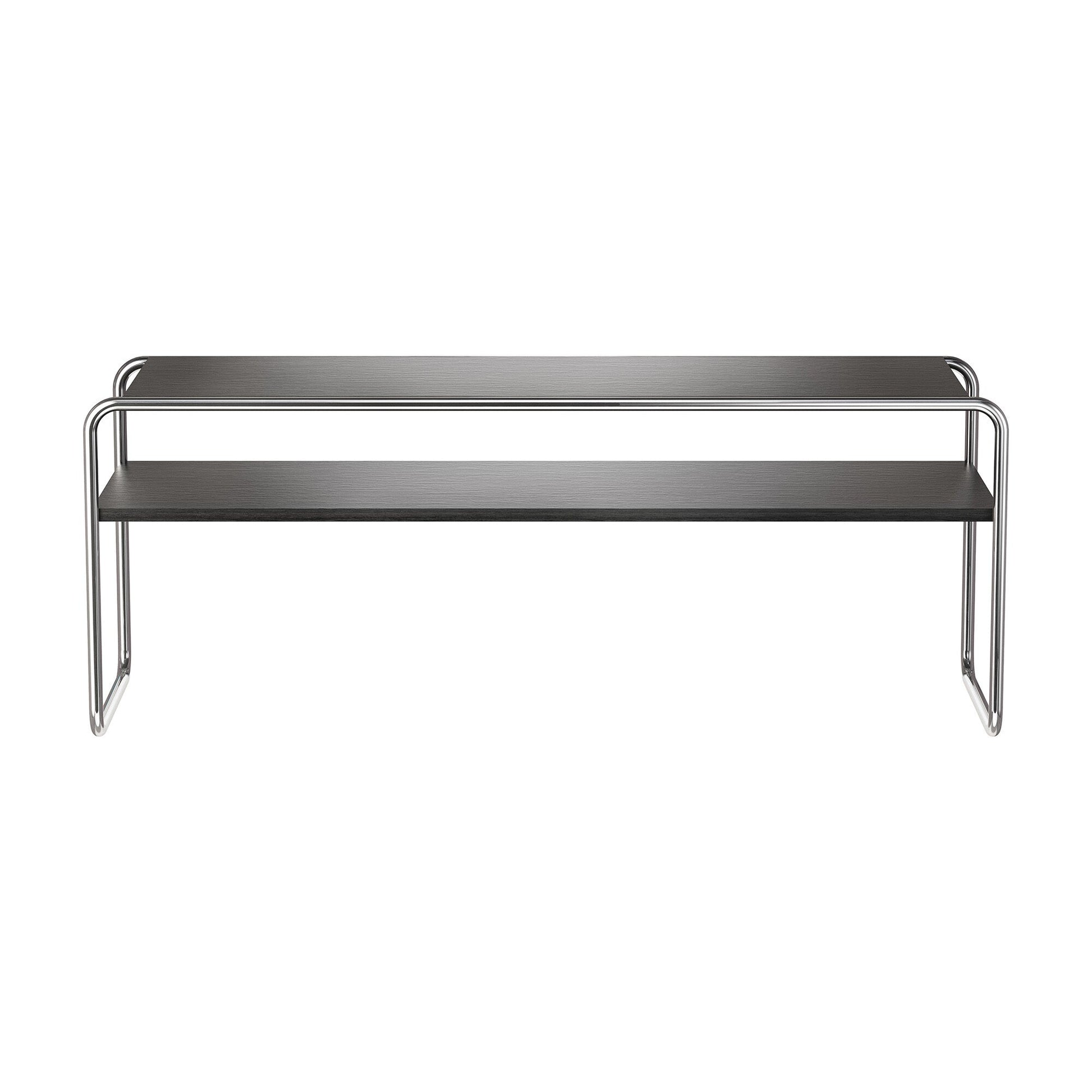 Mit einer Länge von 130 cm und einer Breite von 39 cm bietet der B 10/1 Couchtisch/Beistelltisch einen perfekten Platz für Bücher, Dekorationen und Kunstobjekte. Die zwei übereinander angebrachten MDF-Platten, die auf dem gebogenen Stahlrohrgestell befestigt sind, vervollständigen die geradlinige Ästhetik, die Anhänger der neuen Sachlichkeit, moderne Minimalisten und Pragmatiker gleichermaßen begeistert.
