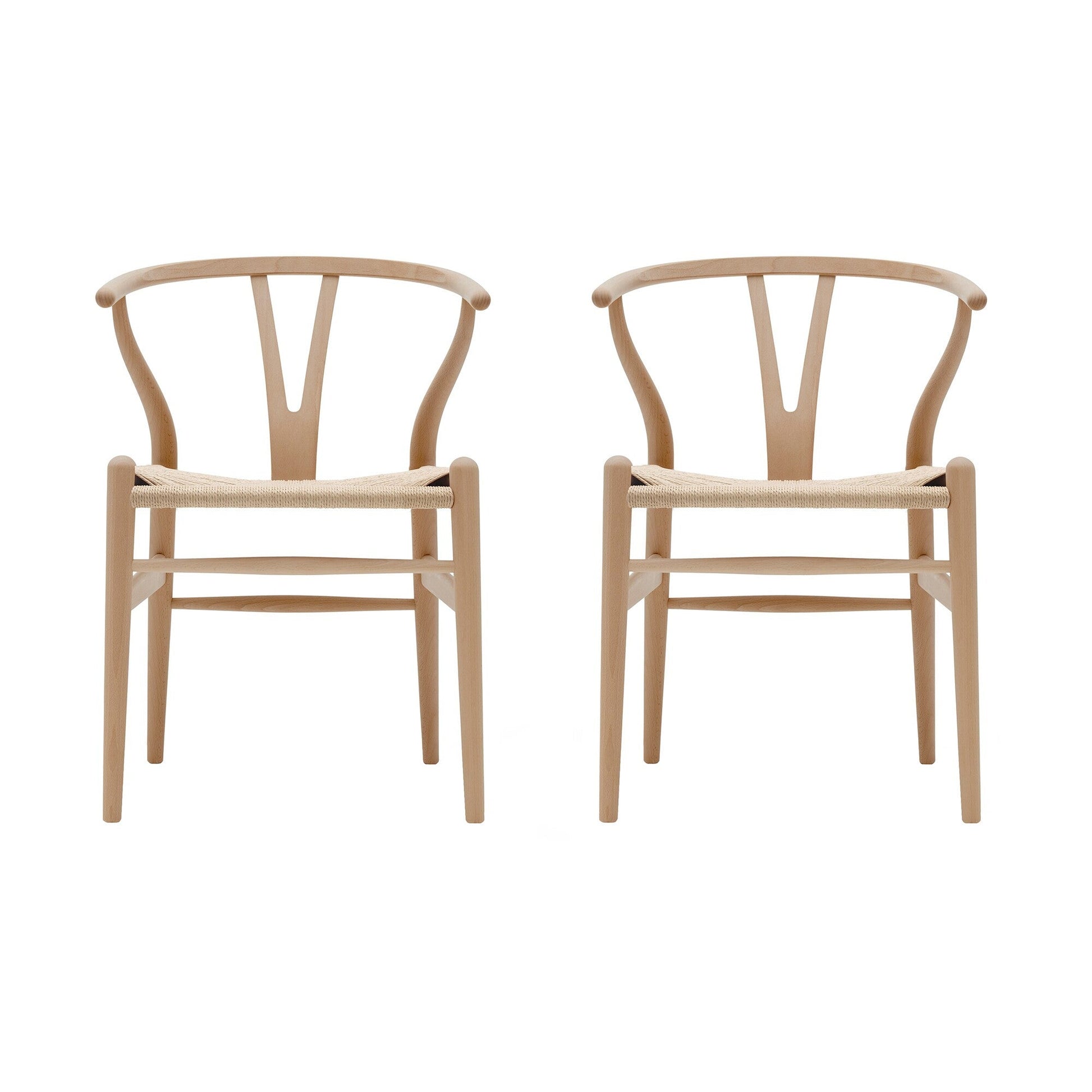 Ausführungen: CH24 Wishbone Chair Gestell Buche 2er Set / natur/Buche geölt/BxTxH 55x51x76cm/Geflecht Papiergarn natur