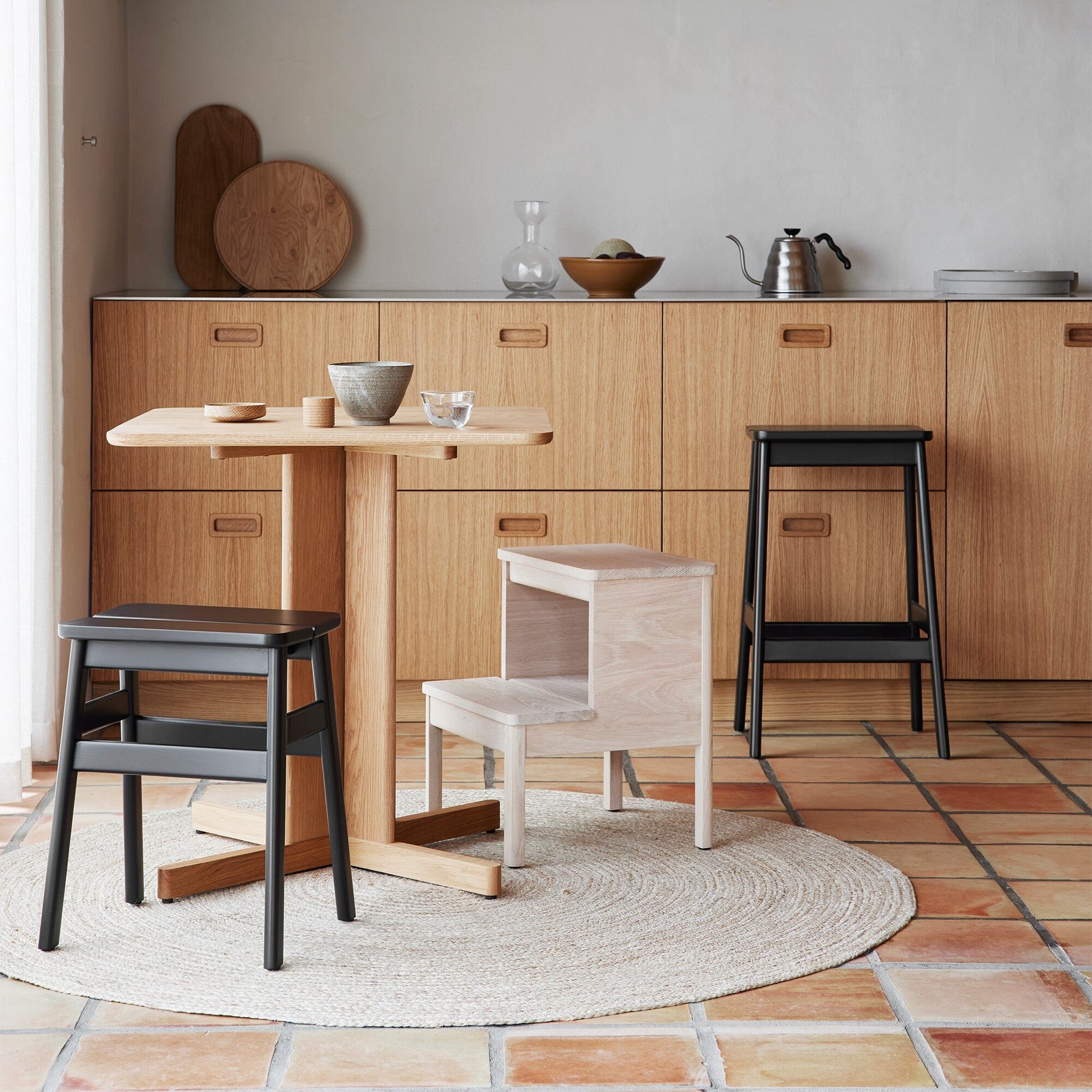Die Auswahl an Farben ermöglicht es, den Hocker je nach Stil zu individualisieren. Die Holzoberfläche ist entweder geölt, gebeizt oder lackiert. Mit einem Gewicht von 2,9kg ist der Angle Standard Hocker ein flexibles Beistellmöbel, das sich perfekt in die Küche, den Flur oder das Kinderzimmer einfügt. Er kann zusätzlich als Fußablage oder neben dem Sofa oder Bett als kleiner Beistelltisch verwendet werden und kann mit bis zu 200kg belastet werden.