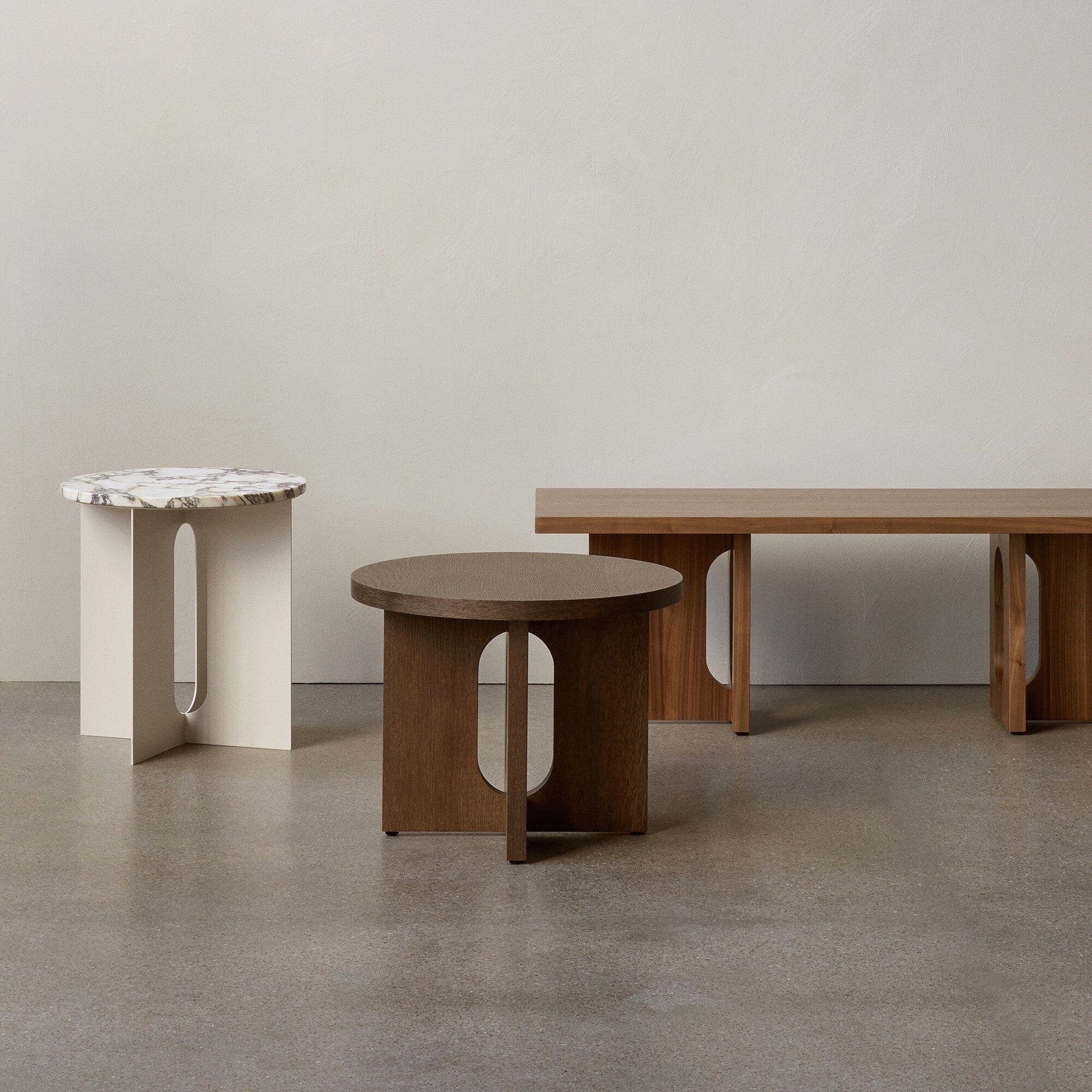 Der Androgyne Beistelltisch Ø50cm - ein Meisterwerk der Eleganz und des Exklusiven. Entworfen von Danielle Siggerud für die renommierte Marke Audo, dieses Stück ist ein echter Blickfang in jedem Raum. Der Name "Androgyne" kommt aus dem Griechischen und beschreibt eine Figur, die sowohl männliche als auch weibliche Merkmale aufweist, was perfekt zum Charakter dieses Beistelltaisches passt.