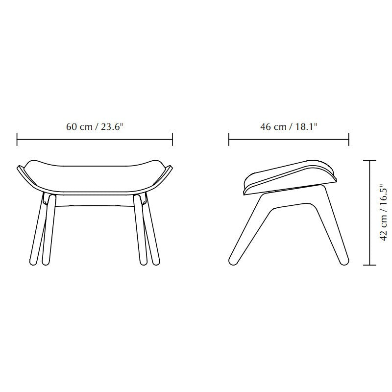 Ausführungen: The Reader Ottoman Eiche dunkel / white sands/Stoff Horizon (100% recyceltes Polyester)/Gestell Eiche dunkel/LxBxH 60x46x42cm