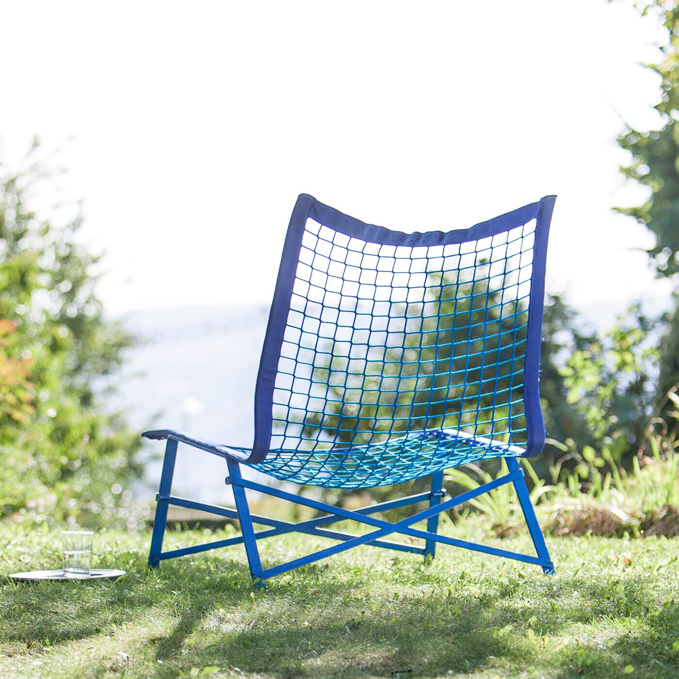 Einzigartig ist der Tie-Break Gartensessel in mehrfacher Hinsicht. Der Clou dieses Sessels liegt in der auf dem metallischen Gestell aus pulverbeschichtetem Flachstahl aufgespannten Tennisnetze, das mit Hilfe von Sicherheitsgurten an diesem angebracht ist. Dies ermöglicht es, dieses Sitzmöbel ohne weitere Vorkehrungen im Außenbereich zu nutzen - weder Sitzpolster noch andere Vorbereitungen sind notwendig, um sich bequem in der Sonne niederzulassen. Die extravagante Herangehensweise macht den Tie-Break Gartensessel zu einem unkonventionellen, aber vor allem bequemen Sitzmöbel.