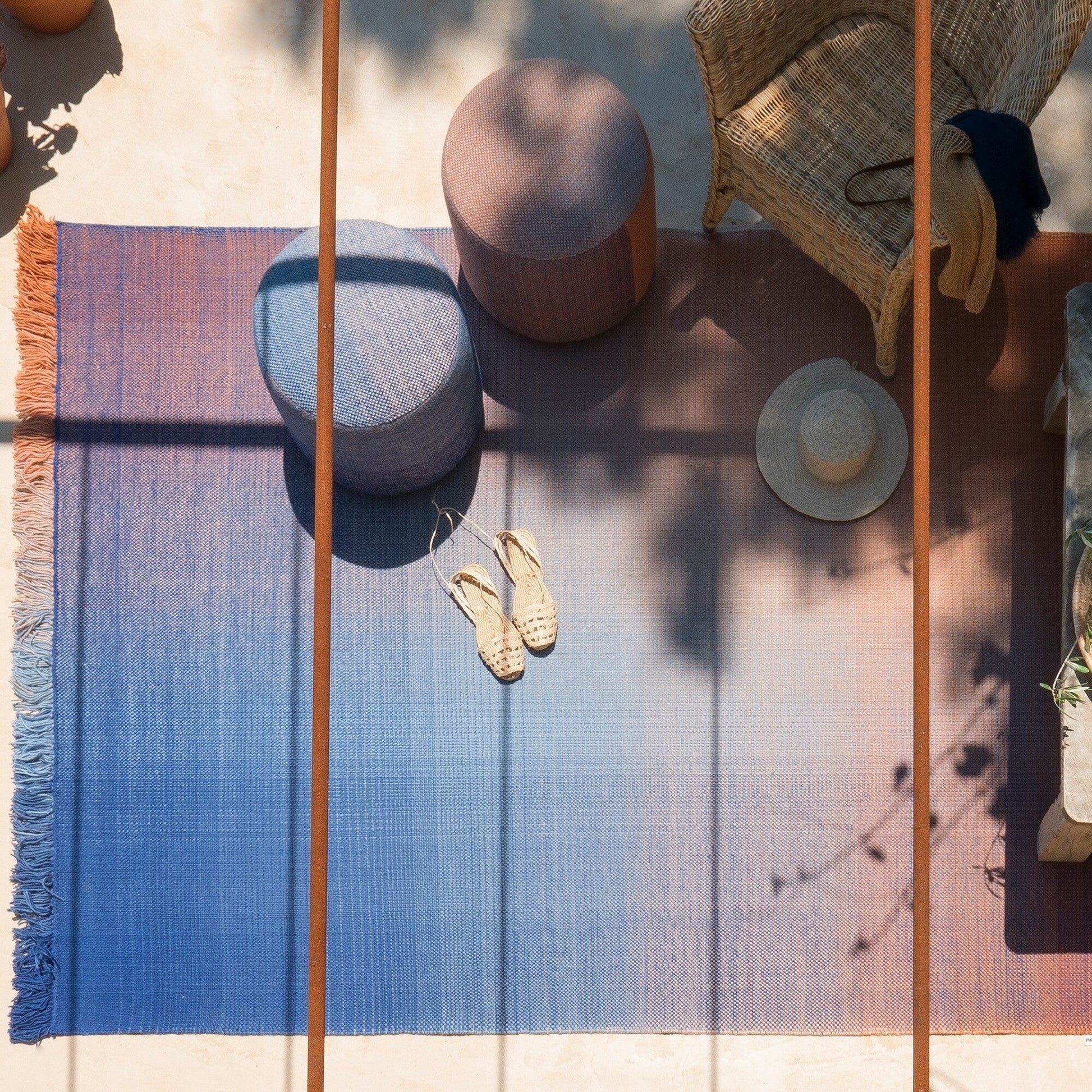 Der Shade Outdoor Pouf ist ein wahrer Hingucker auf jeder Terrasse, in jedem Atrium oder an jedem Pool. Entworfen von Begüm Cana Özgür und Marcos Catalán für die renommierte Marke Nanimarquina, ist dieser Pouf Teil einer Kollektion, die Teppiche und Sitzkissen zu farbenfrohen Sets zusammenfügt. Die Bezeichnung Shade spielt auf die schattenhaften Farbverläufe an, die sowohl die Teppiche als auch die Bezugsstoffe der Poufs aufweisen.