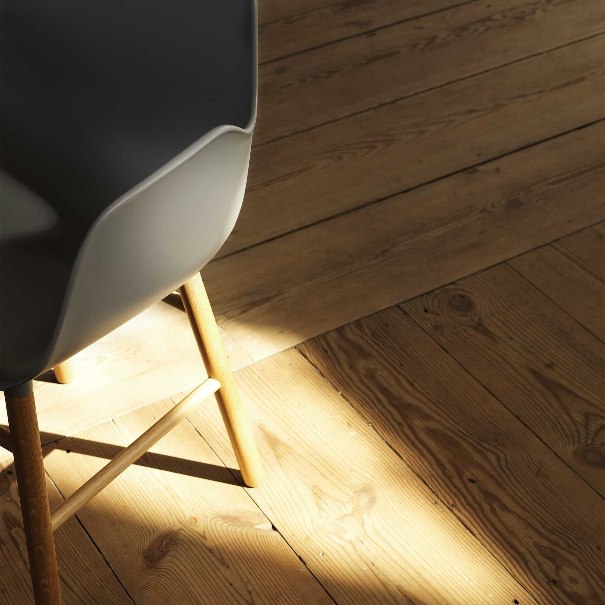 Der Form Armlehnstuhl Gestell Eiche - ein Meisterwerk des dänischen Designs von Simon Legald für Normann Copenhagen. Mit seiner minimalistischen Eleganz vereint er Sitzfläche und Gestell zu einer harmonischen Einheit.