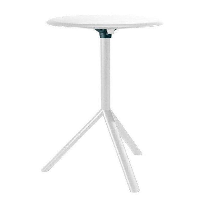 Der klappbare Tisch, der auf drei Beinen steht, besteht aus pulverbeschichtetem Stahl und bietet damit eine hohe Verschleißfestigkeit. Die Tischplatte kann heruntergeklappt werden, sodass der Miura Beistelltisch gut der Länge nach gestapelt werden kann. Dank seiner robusten Konstruktion und widerstandsfähigen Materialien ist der Miura Tisch sowohl für den Innen- als auch den Außenbereich geeignet.