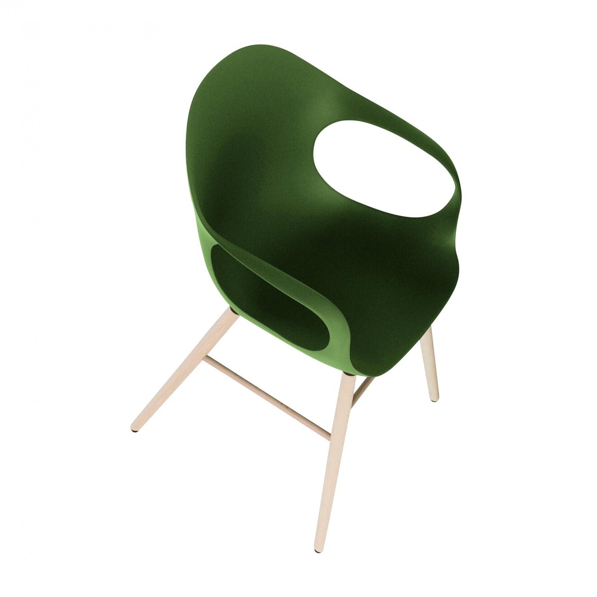 Der Elephant Armlehnstuhl mit Holzgestell ist ein Meisterwerk der Modedesigner von Neuland Industriedesign, exklusiv für die italienische Marke Kristalia entworfen. Dieser Stuhl ist Teil einer eleganten Stuhlkollektion, die 2012 mit dem renommierten Interior Innovation Award ausgezeichnet wurde. Der Name "Elephant" wird durch die Form der Sitzschale inspiriert, deren Silhouette das Profil eines Elefanten erinnert.