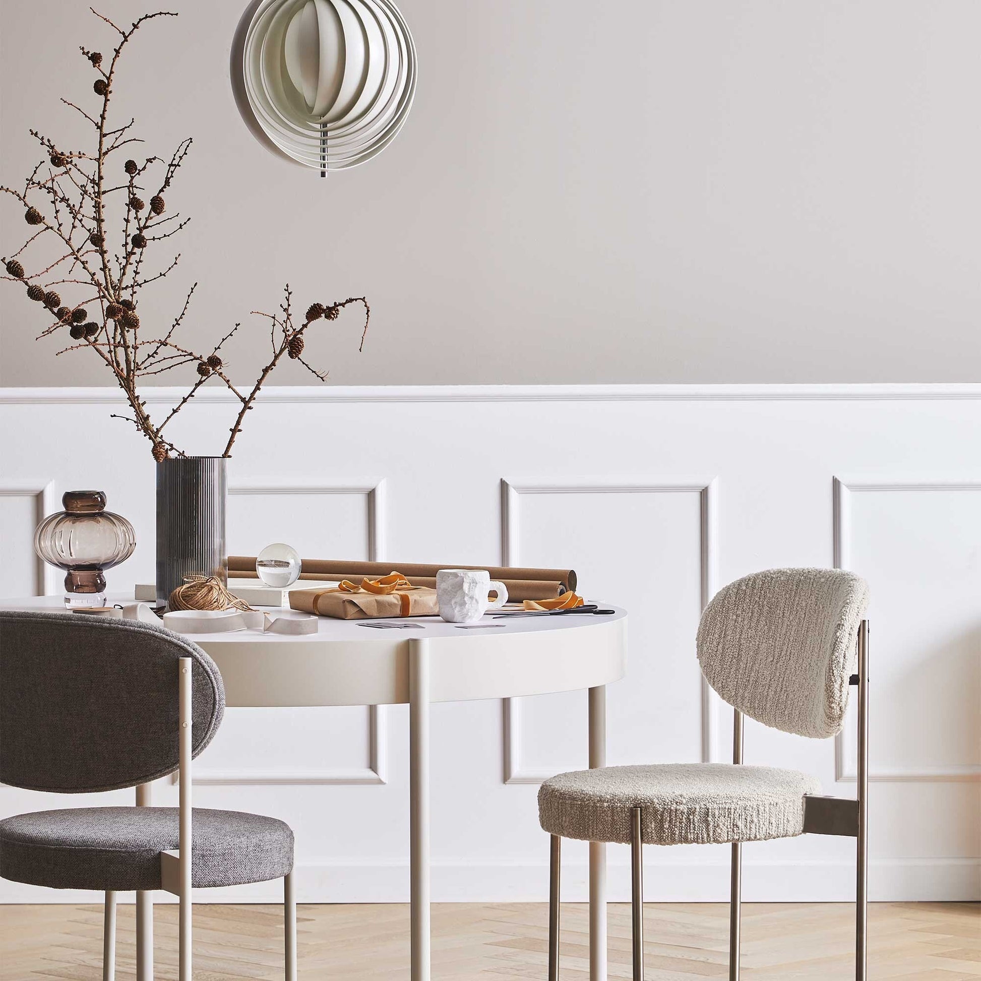Ausführungen: Series 430 Tisch Ø120cm / weiß/Tischpaltte Fenix Linoleum/Rand MDF/H 75,5cm / Ø 120cm/Gestell Edelstahl weiß RAL 9016