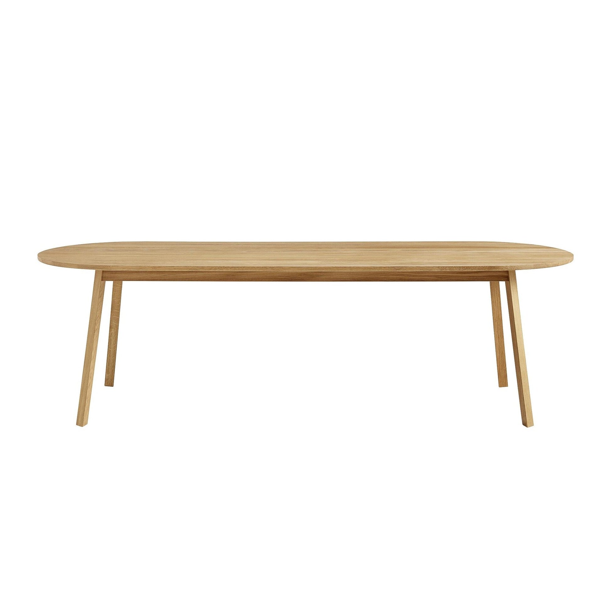 Der edle Triangle Leg Tisch wird aus naturfarbenem, geöltem Eichenholz hergestellt, das für seine Qualität und Langlebigkeit bekannt ist. Die ovale Tischplatte bietet genügend Platz für bis zu zwölf Personen, während die dreieckig geformten Tischbeine den Tisch mit einer designbetonten Optik ausstatten und einen interessanten Kontrast zur weichen Form der Tischplatte bilden. Kombinieren Sie den schönen Tisch mit der passenden Triangle Leg Bank, um Ihrem Essbereich eine besonders elegante, harmonische Anmutung zu verleihen. Luxuriöse Möbel des Herstellers HAY überzeugen durch herausragendes Design und hochwertige, langlebige Qualität.