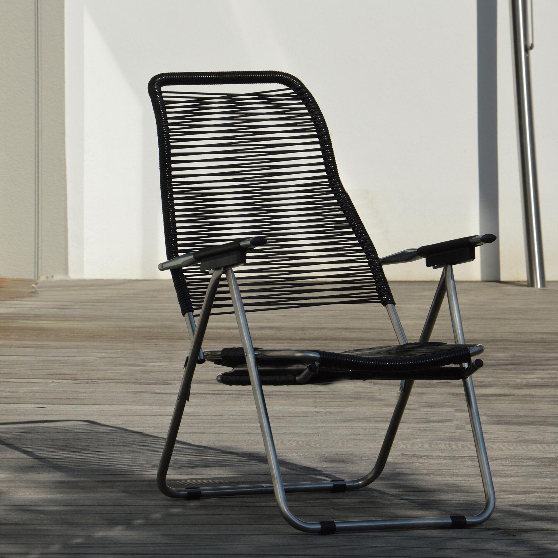 Mit einem einfachen Klappenmechanismus lässt sich der Liegestuhl herauf- und herunterklappen, was ihn zu einem perfekten Begleiter in jedem Garten macht. Ob man sich nur kurz hinsetzen will oder sich entspannen möchte, der Spaghetti Liegestuhl von Jan Kurtz bietet die perfekte Flexibilität. Die für die Kollektion typischen, aus Kunststoff geflochtenen Lehnen passen sich angenehm an die Körperkonturen an, sodass man hier besonders bequem liegen kann.
