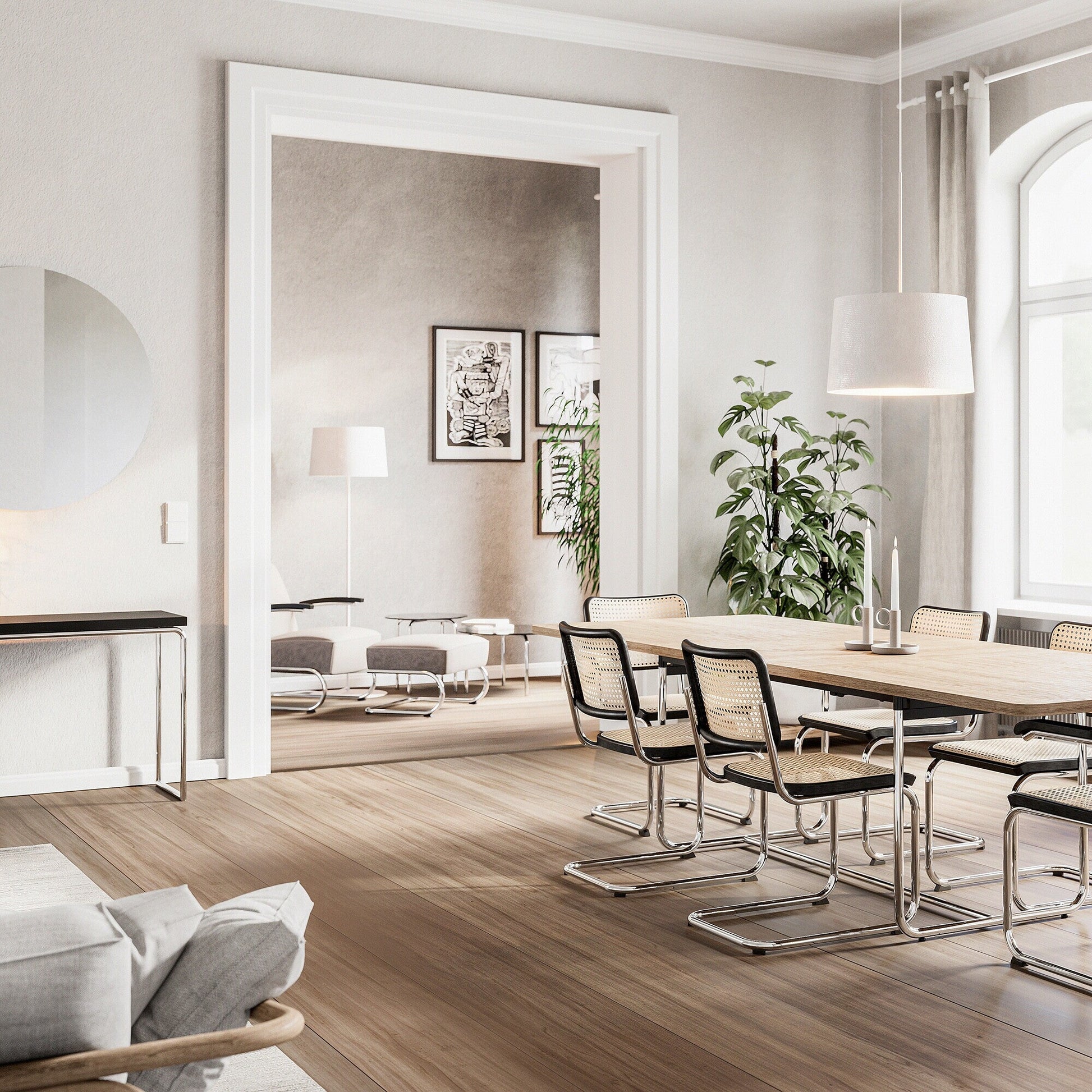 Der B 109 Konsolentisch klappbar - ein Meisterwerk der Thonet-Design-Werkstatt. Inspiriert von namhaften Architekten der 1930er-Jahre, wurde dieser Entwurf für die Marke Thonet entwickelt. Eine Zeit, in der Platzsparenschopfende Möbel für kleine Wohnräume beliebt waren, prägt auch den B 109 Konsolentisch klappbar.