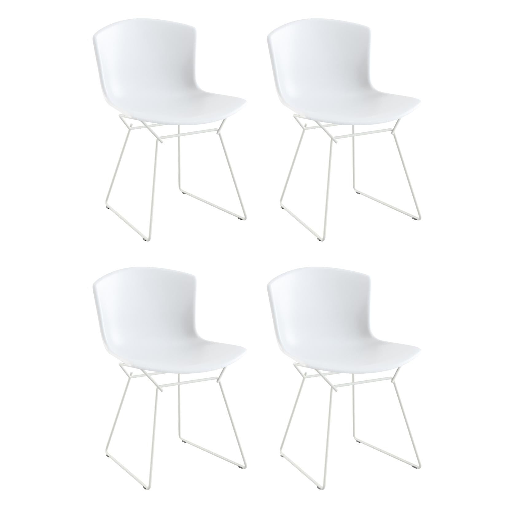 Ausführungen: Bertoia Plastic Side Chair Stuhl 4er Set / weiß/BxHxT 52,3x77x54,6cm/Kunststoffgleiter/Gestell weiß lackiert