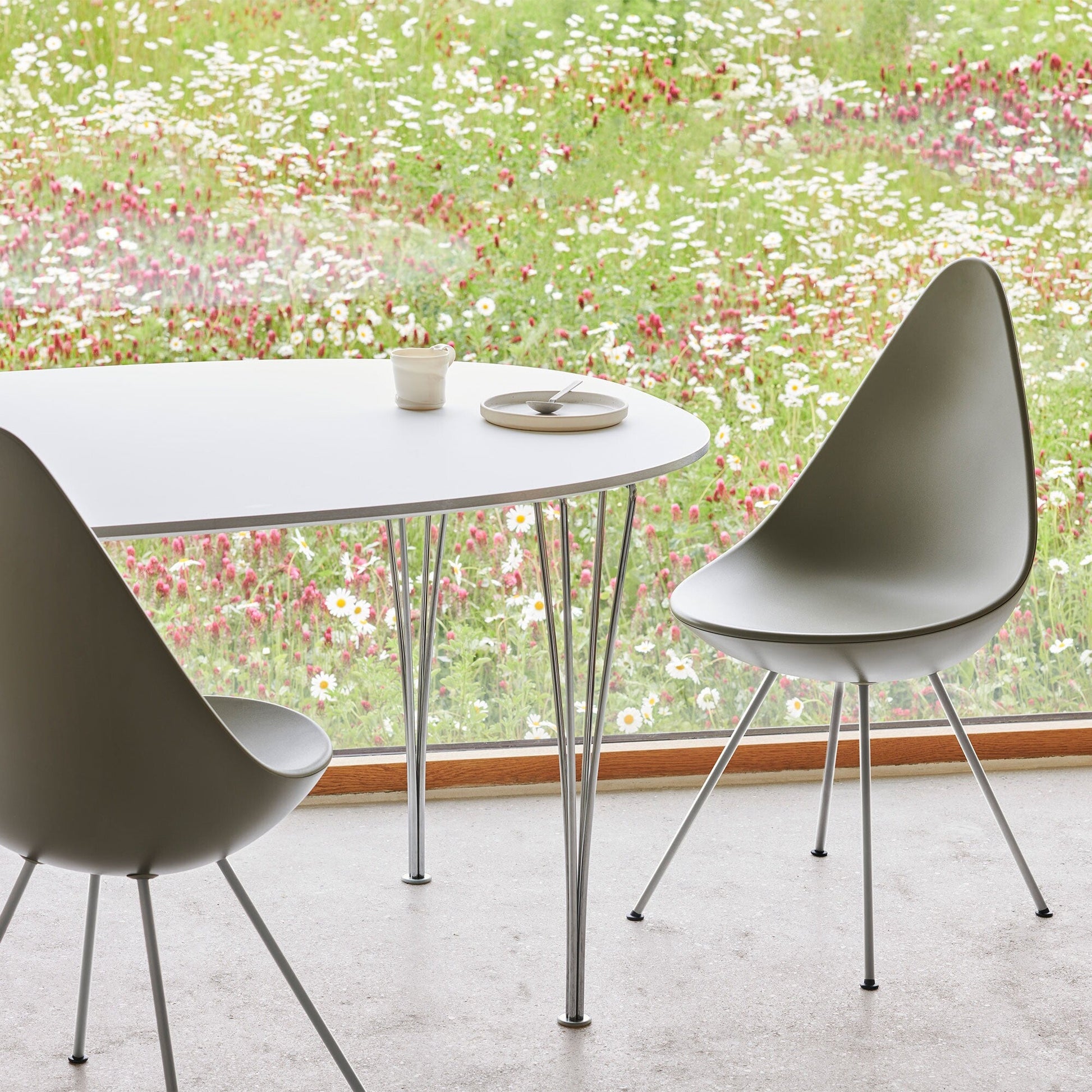Der Drop™ Stuhl von Fritz Hansen ist ein Meisterwerk der modernen Möbelkunst. Entworfen von Arne Jacobsen, einem der bekanntesten Designern des 20. Jahrhunderts, präsentiert sich dieses Stuhlgestell in einem verchromten Finish, das Eleganz und Exklusivität ausstrahlt. Mit seinen sorgfältig ausgewählten Materialien und seinen präzisen Formen ist der Drop™ Stuhl ein echter Klassiker der dänischen Design-Tradition.