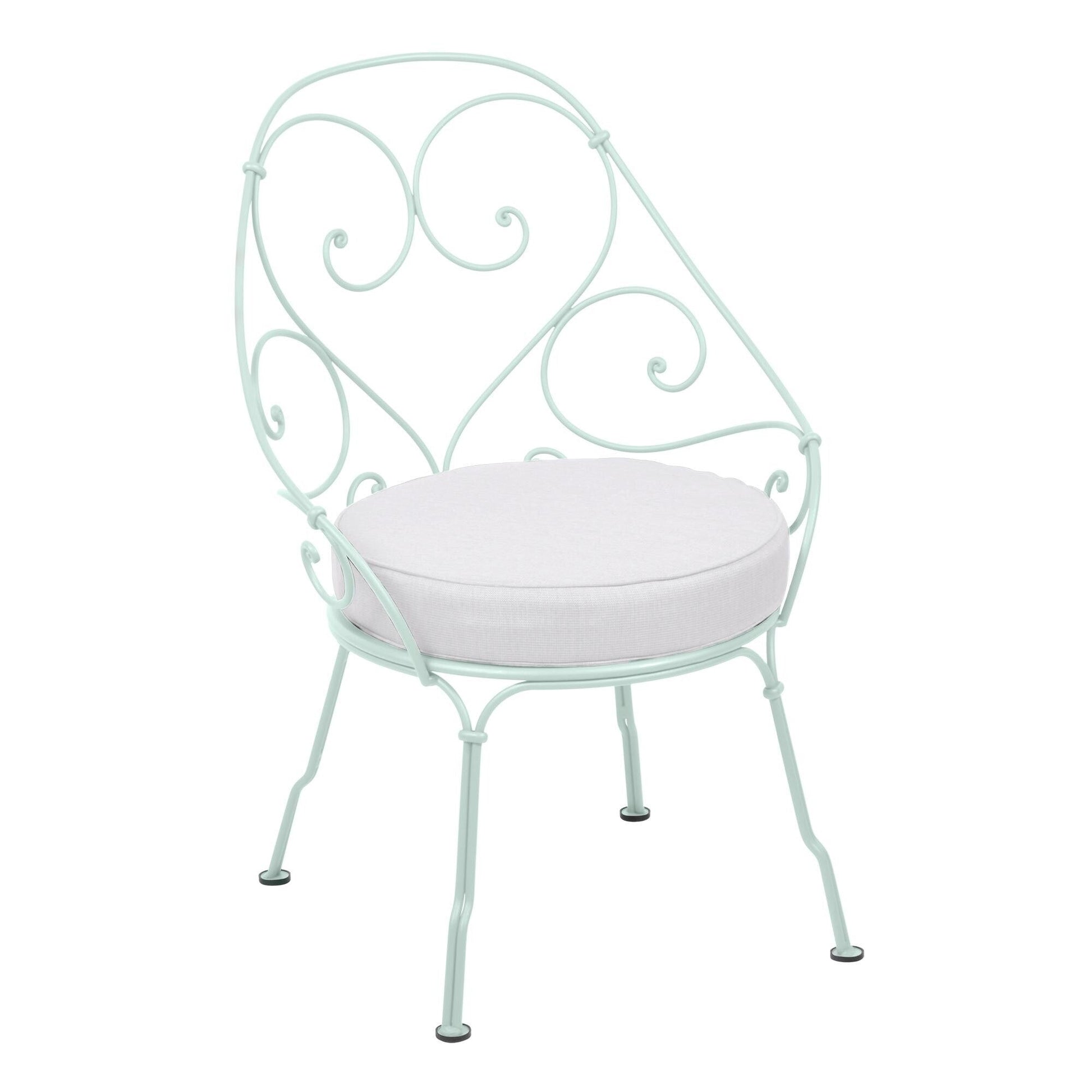 Ausführungen: 1900 Cabriolet Gartenstuhl mit Sitzkissen / gletscherminze/texturiert/Kissenstoff Sunbrella® grauweiß/BxHxT 59,5x82,5x55,5cm/ UV-beständig
