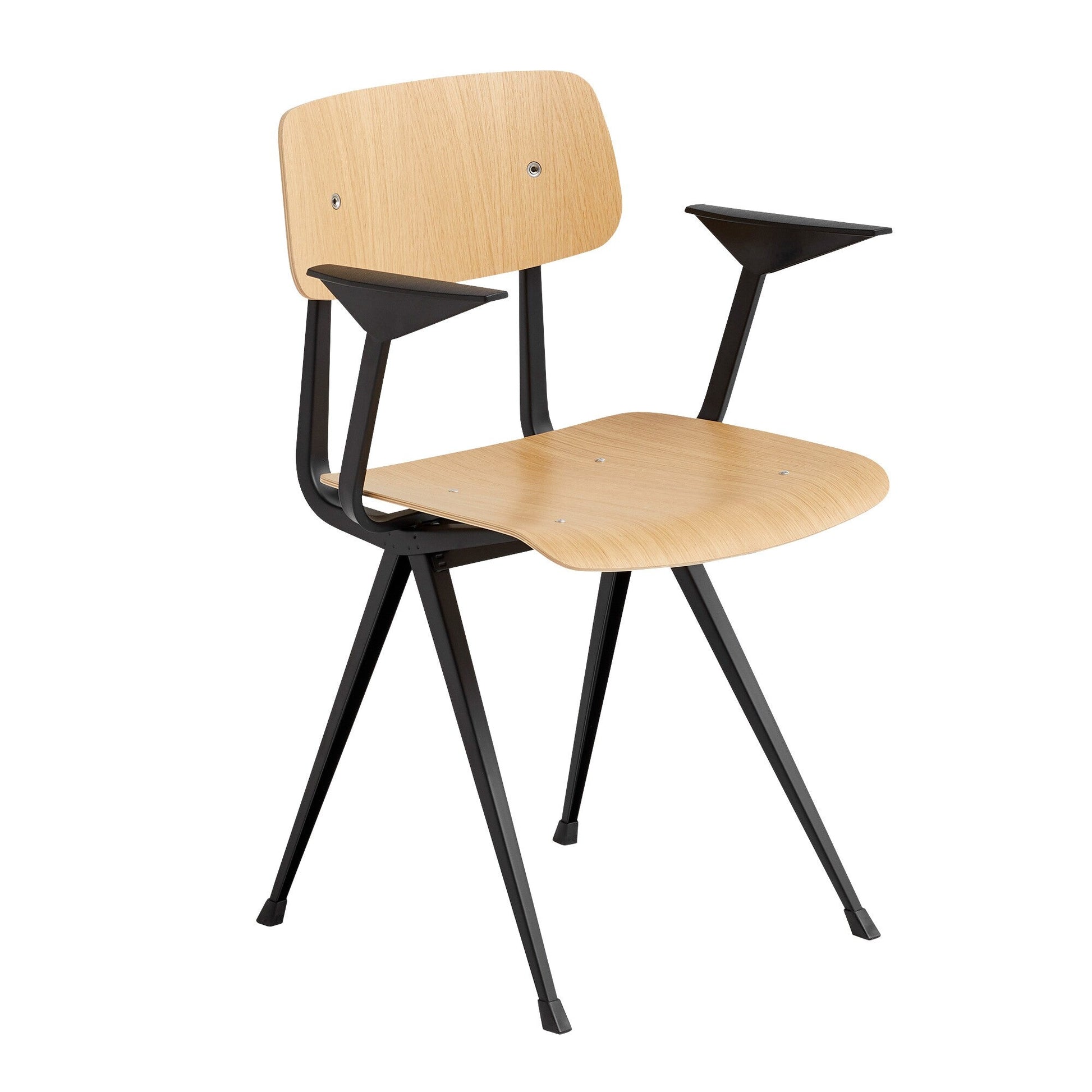 Ausführungen: Result Armlehnstuhl Gestell schwarz / eiche/lackiert wasserbasiert/Gestell Stahl schwarz pulverbeschichtet/BxHxT 55x81x48,5cm