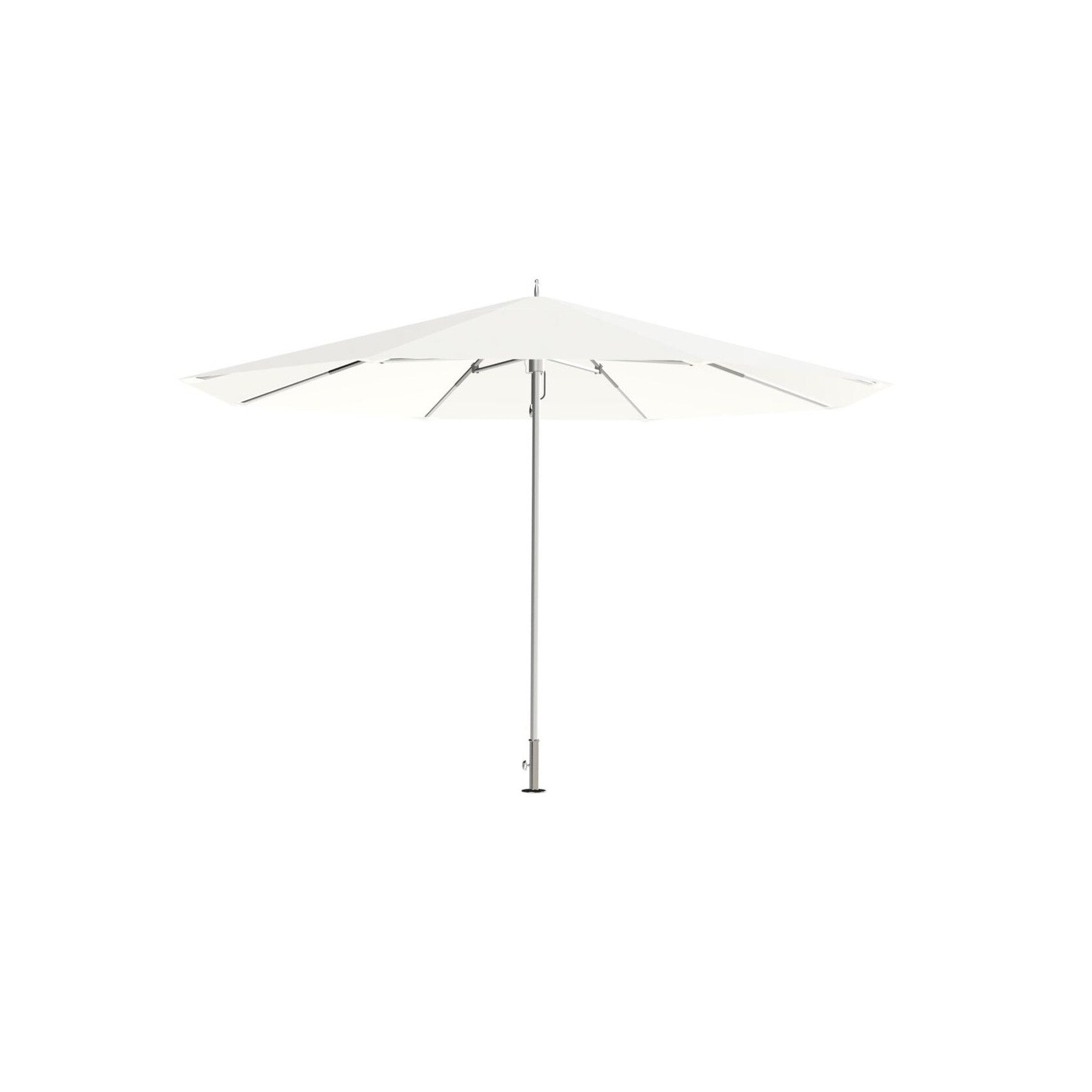 Das Aluminiumgestell samt Spitze ist langlebig und robust, während die verstärkten Edelstahlstrebenverbindungen zusätzliche Stabilität bieten. Der Auto-Loc-Lift ermöglicht es, den Schirm mithilfe eines Flaschenzugsystems mit Segelklemme leicht zu öffnen und schließen. Zudem kann der Schirm über das integrierte TILT-System um 45 Grad geneigt werden. Der Stoff Sunbrella Marine 4604 ist aus Acryl gefertigt, was ihn wasserabweisend und widerstandsfähig macht. Er zeichnet sich auch durch seine Beständigkeit gegen Schimmel und UV-Strahlung aus.