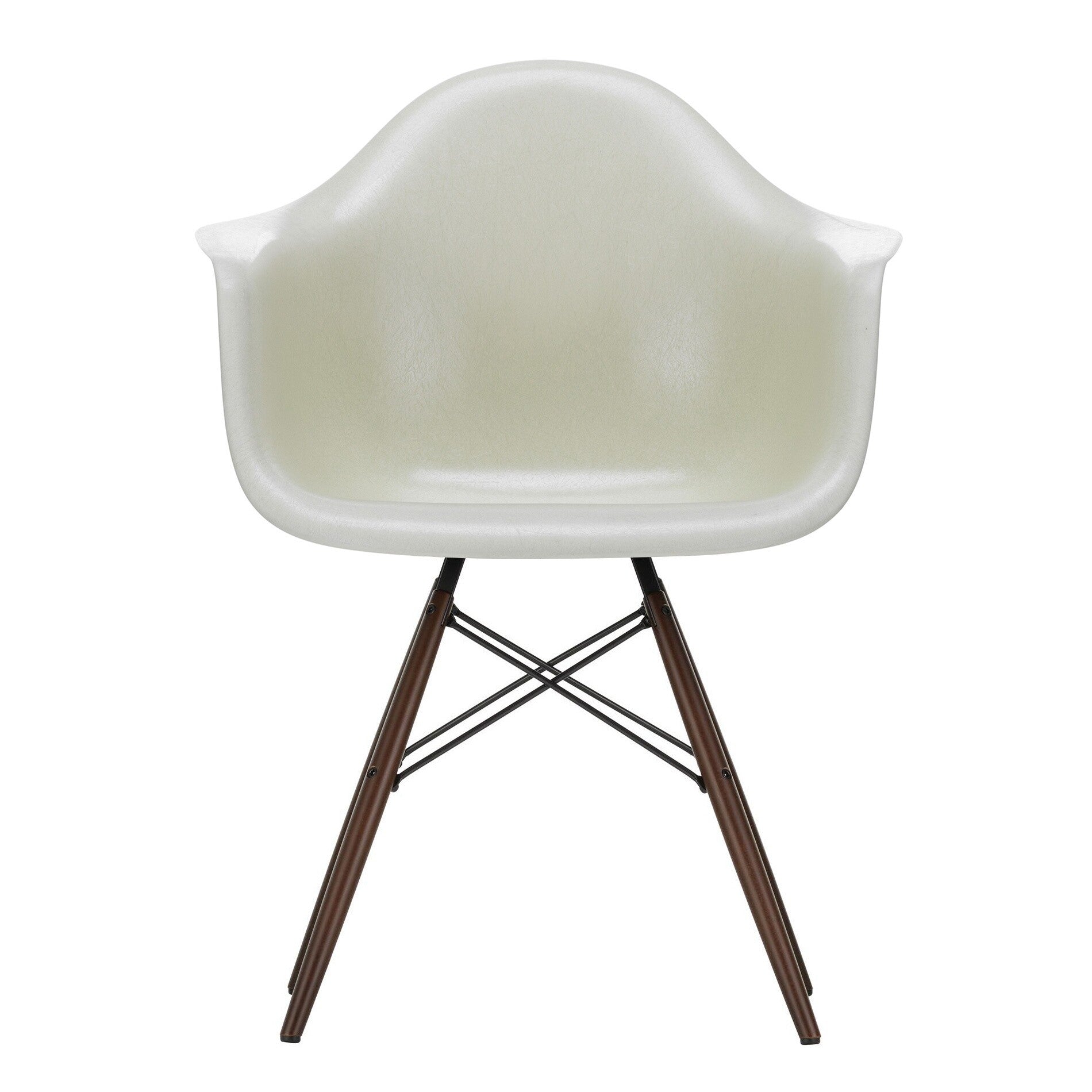 Ausführungen: Eames Fiberglass Armchair DAW Ahorn dunkel / Pergament/Sitzschale Fiberglas/Gestell Ahorn dunkel/Stahl schwarz/BxHxT 62,5x83x60cm