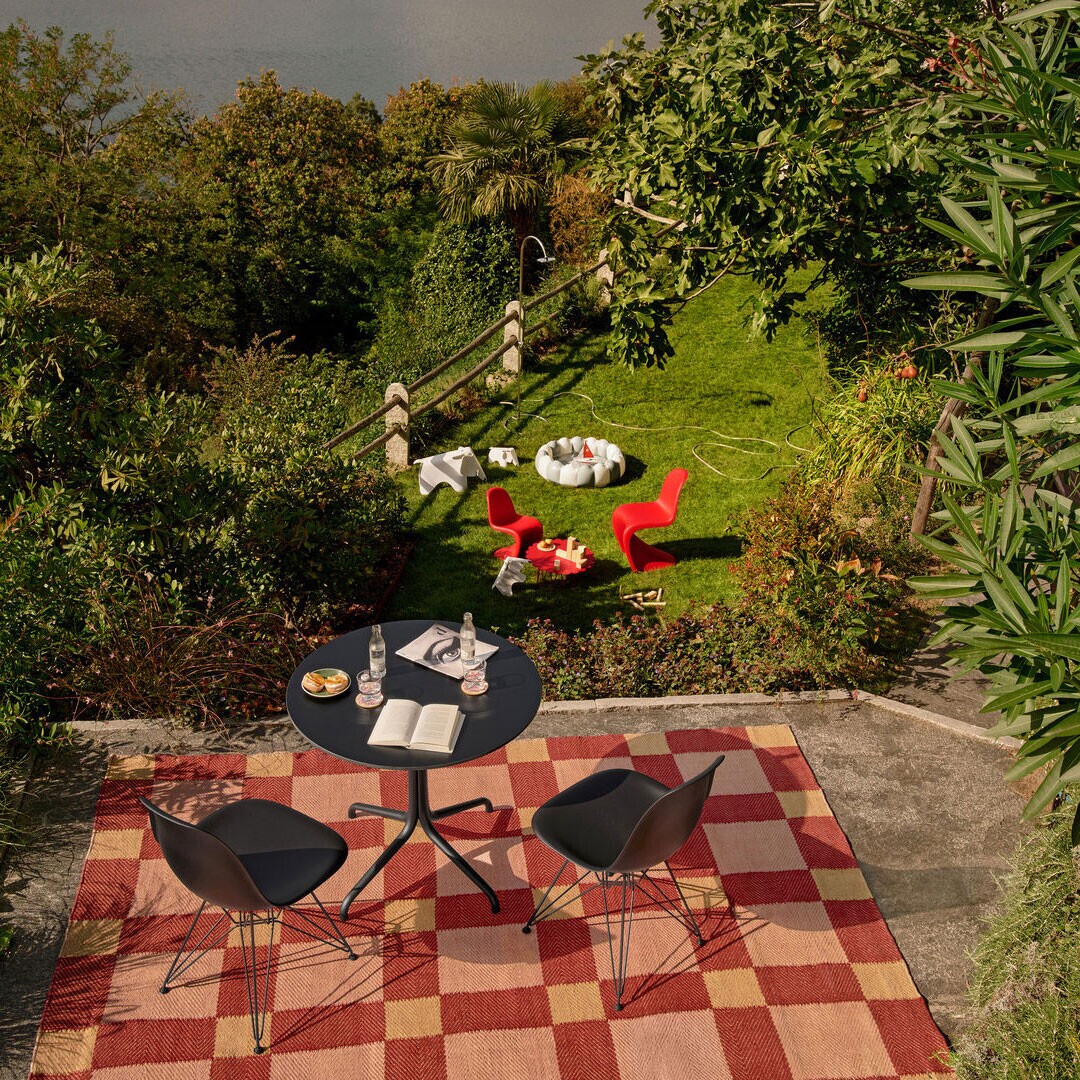 Mit einer Höhe von 86 cm, einer Breite von 50 cm und einer Tiefe von 61 cm ist der Panton Chair Neue Maße ein modulares Design, das sich perfekt in verschiedene Räume integrieren lässt. Die Rückenlehne ist 39 cm hoch und die Sitzhöhe beträgt 44 cm. Der Stuhl ist wetterfest und kann auch für den Außenbereich eingesetzt werden. Allerdings sollte er nicht zu lange dem UV-Licht ausgesetzt werden, um die Farbe zu erhalten.