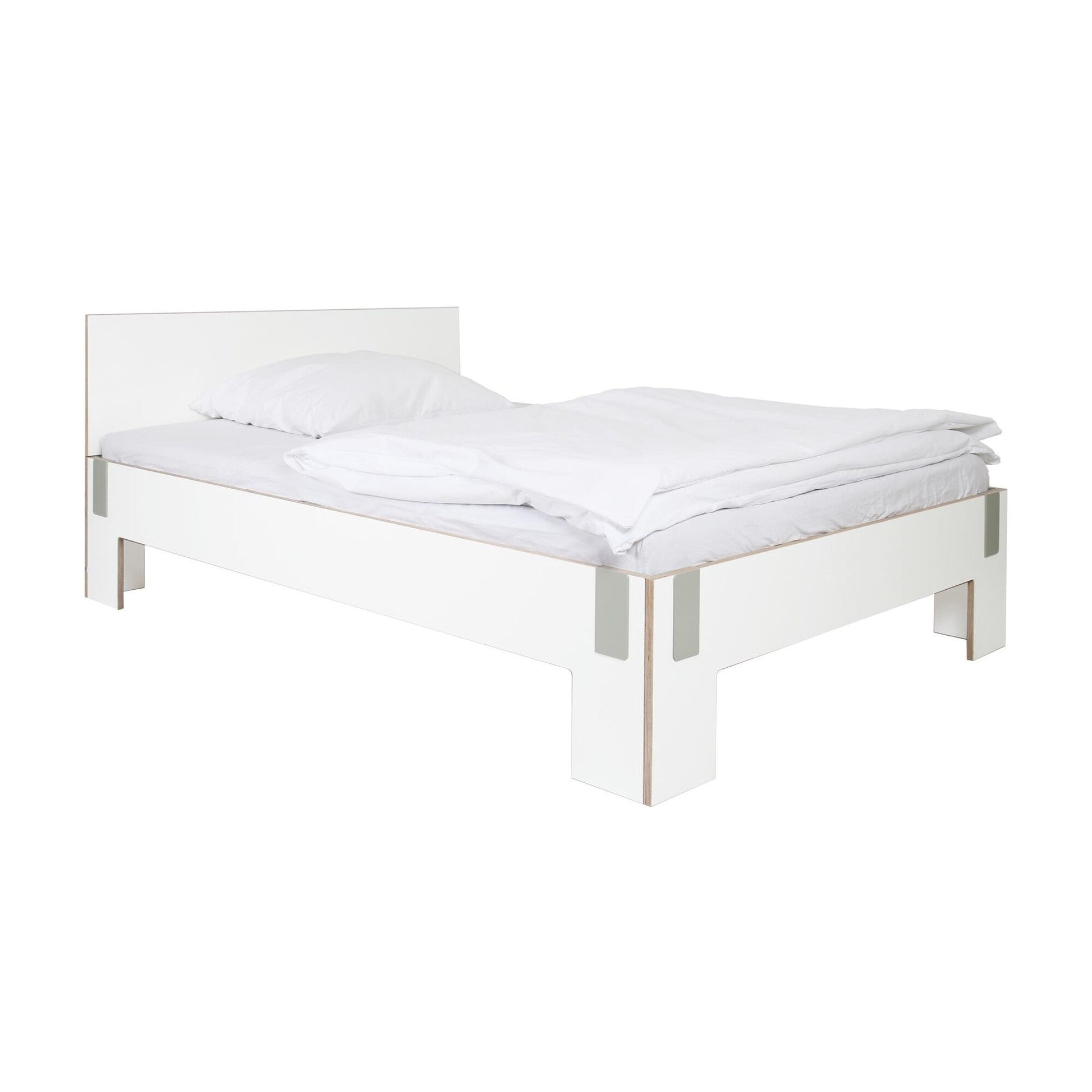 Ausführungen: Moormann Tagedieb Bett mit Kopfteil 120x200cm / weiß/Klammern Stahl gepulvert/LxBxH 213.4x124.7x81.5cm/ohne Matratze und Lattenrost