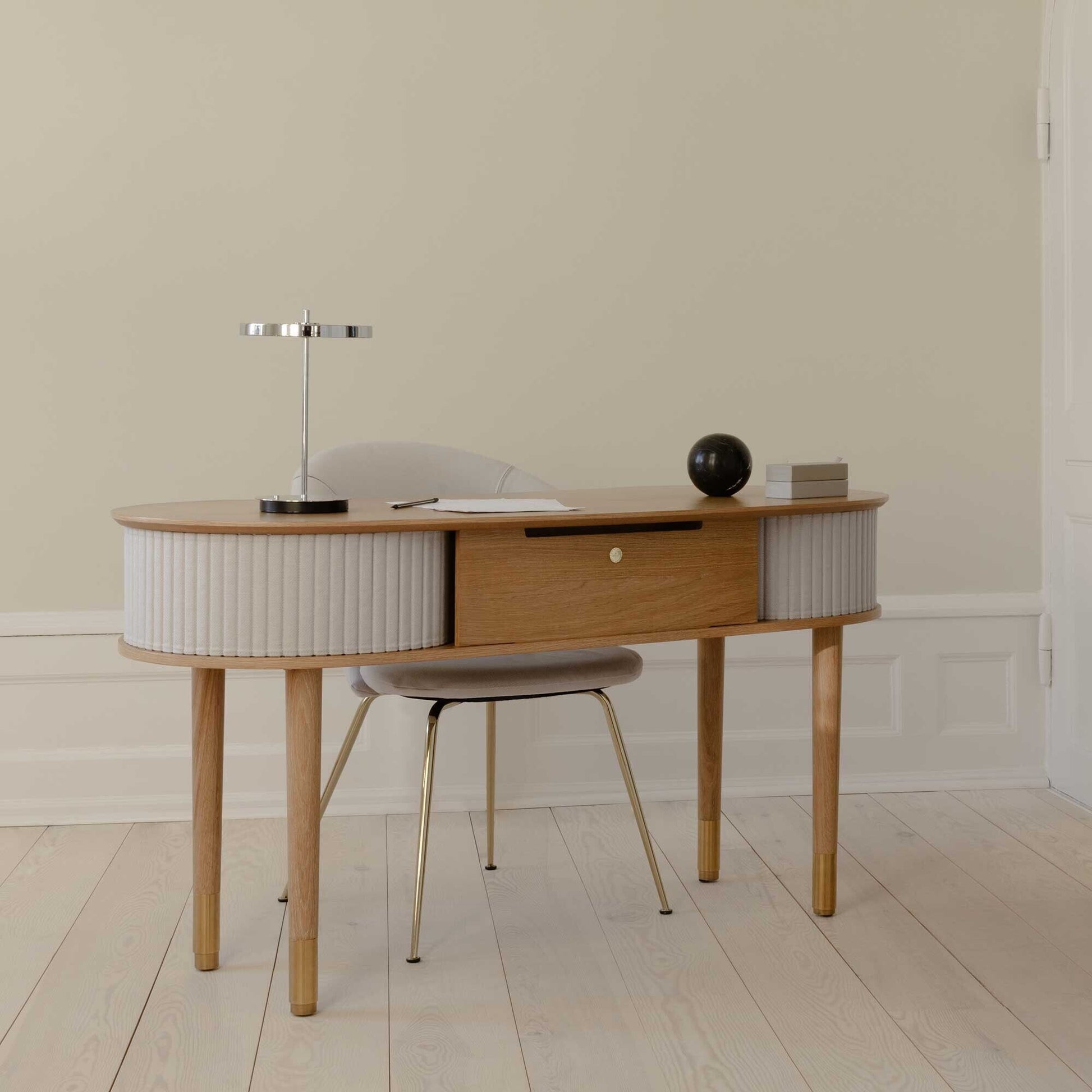 Der Audacious Schreibtisch ist ein Meisterwerk des Designs, geschaffen von Jonas Søndergaard für die renommierte Marke Umage. Mit seiner einzigartigen Form und den hochwertigen Materialien überzeugt er durch seine exklusive Eleganz.