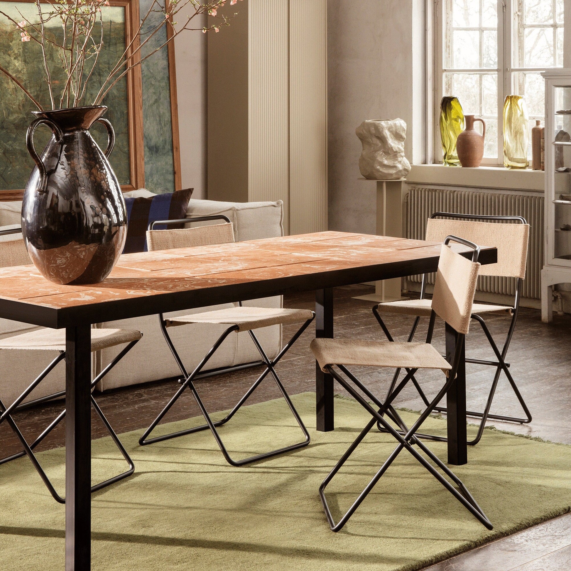 Der Name Flod Tiles bezieht sich auf die Materialien, die für die Tischplatte verwendet werden - traditionell gefertigte Keramikfliesen, die in der Poebene hergestellt werden. Diese Region ist für ihre lange Tradition in der Keramikproduktion bekannt. Der Flod Tiles Esstisch ist in verschiedenen Farben erhältlich, was ihm eine einzigartige Note verleiht.