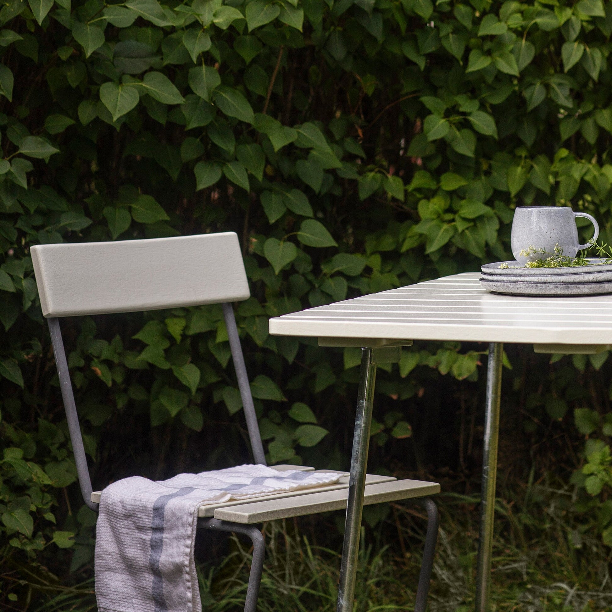 Der 1 Gartenstuhl Eiche von Grythyttan ist ein Meisterwerk der schwedischen Möbelkunst. Entworfen von Artur Lindqvist, dem Gründer von Grythyttan Stålmöbler, ist dieses zeitlos moderne Outdoormöbel seit den 1930er-Jahren ein Symbol für bequemen Sitzkomfort unter freiem Himmel.