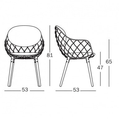 Abmessungen: Breite: 53cmHöhe: 81cmTiefe: 53cmSitzhöhe: 47cmHöhe Armlehne: 65cm